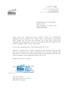 No podem concretar una xifra actualitzada ja que el Registre Civil d'Eivissa i Formentera ha estat incapaç de contestar per escrit, ni via telefònica les dades més recents (s'adjunta document de la petició per part nostra al Registre Civil el 2 d'octubre) sobre el número de matrimonis igualitaris celebrats l'any 2011 i tot el que portem de 2012 a Eivissa i Formentera. Segons l'Institut d'Estadística de les Illes Balears (IBESTAT), aquestes són les xifres oficials fins el 2010: